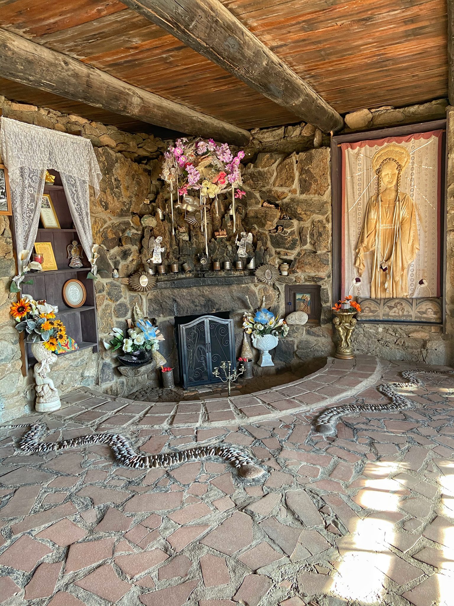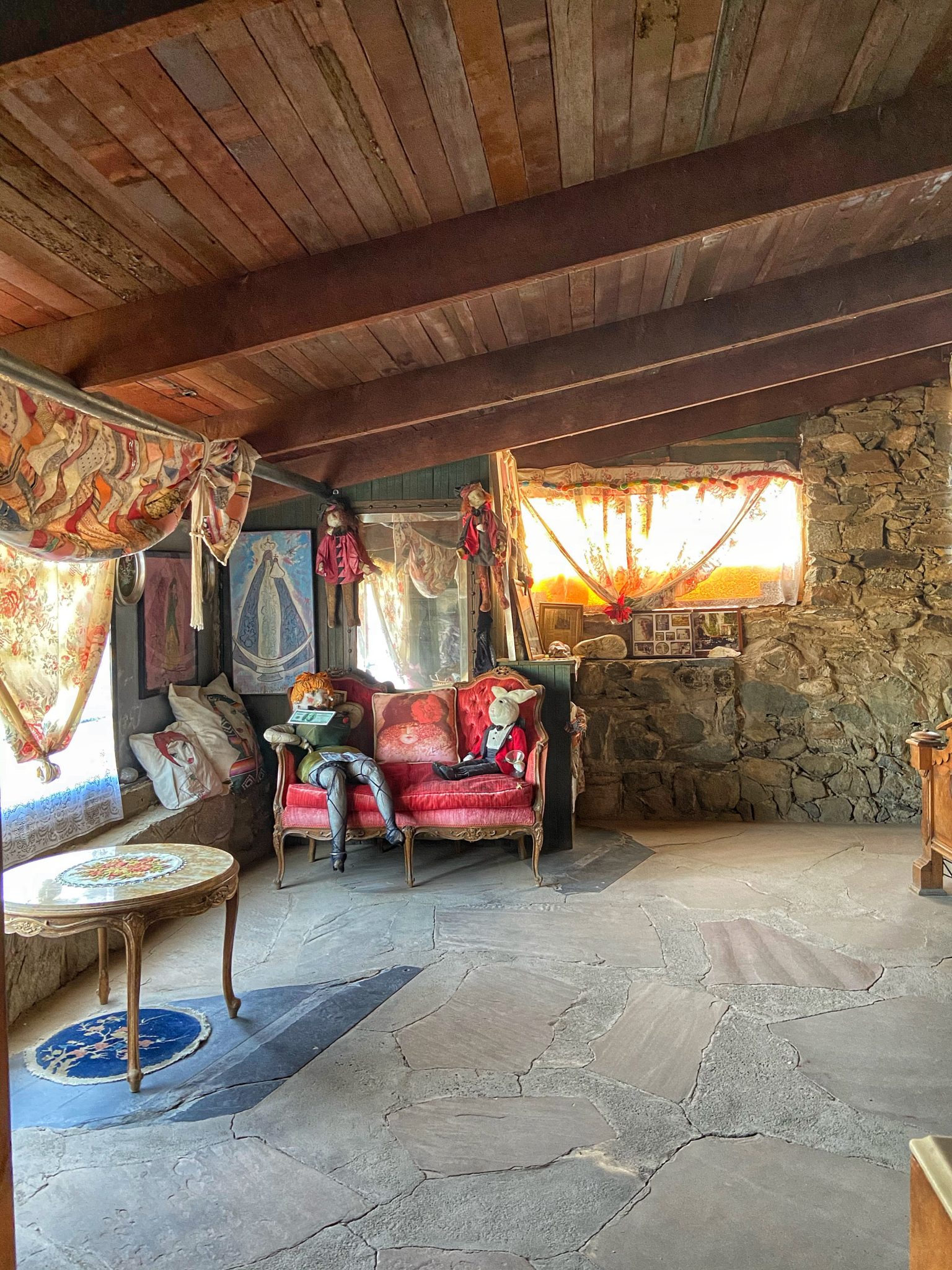 Fran and Mary Lou started offering tours in 1948. Mary Lou lived the house until she passed away in November 2011. She had made her living by offering tours. Electricity was added to parts of the Castle in 1992. The house is now cared for by the Mystery House Foundation and care takers still live on the property. Many of the rooms are not open to the public. All of Mary Lou’s belongings are in the property left undisturbed. The tour guides ask that to please do not touch so it can me kept like a museum. She was quite an eccentric person. A collection of pet rocks, a room full of jeans and jean pillows, a doll from “The House of Joy”.