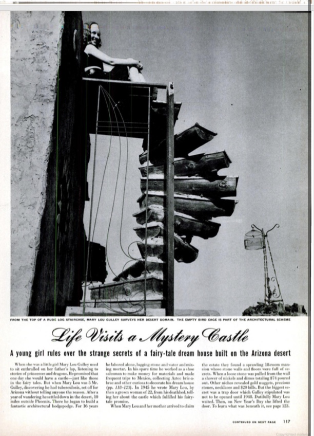 It was built by a cobbler from Seattle named Boyce Gulley. He had been diagnosed with Tuberculosis and given a six month life expectancy. He decided to keep this a secret from his wife and daughter and disappeared without telling anyone so as not to be a burden. He relocated to Phoenix for the hot and dry climate, and chose a spot about nine miles south of the city that at the time was next to the city dump to build his castle.